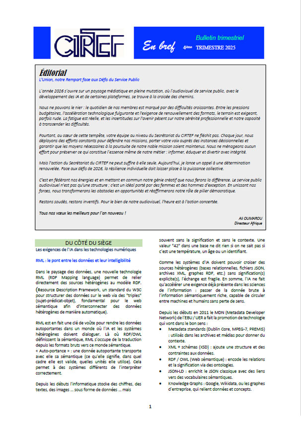 Pourtant, au cœur de cette tempête, votre équipe au niveau du Secrétariat du CIRTEF ne fléchit pas. Chaque jour, nous déployons des efforts constants pour défendre nos missions, porter votre voix auprès des instances décisionnelles et garantir que les moyens nécessaires à la poursuite de notre noble mission soient maintenus. Nous ne ménageons aucun effort pour préserver ce qui constitue l’essence même de notre métier : informer, éduquer et divertir avec intégrité.