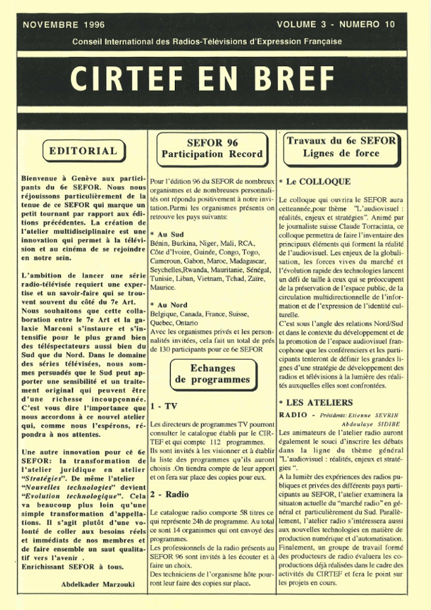 L’ambition de lancer une série radio-télévisée requiert une expertise et un savoir-faire qui se trouvent souvent du côté du 7e Art. Nous souhaitons que cette collaboration entre le 7e Art et la galaxie Marconi s’instaure et s’intensifie pour le plus grand bien des téléspectateurs aussi bien du Sud que du Nord. Dans le domaine des séries télévisées, nous sommes persuadés que le Sud peut apporter une sensibilité et un traitement original qui peuvent être d’une richesse insoupçonnée. C’est vous dire l’importance que nous accordons à ce nouvel atelier qui, comme nous l’espérons, répondra à nos attentes.