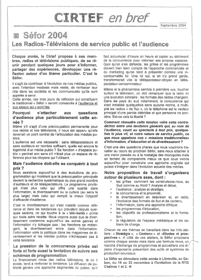 Chaque année, le Cirtef propose à ses membres, radios et télévisions publiques, de se réunir pendant quelques Jours pour s’informer, partager des expériences, développer une réflexion autour d’un thème particulier. C’est le Séfor.